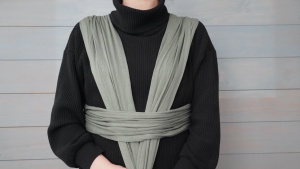 When you're not using your wrap, you can store it in the built-in pocket. The wrinkles will stretch out next time you tie it on.
